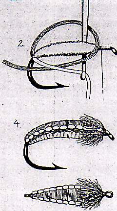 Body: 2 sections of Antron yarn, one light and one medium olive (1/3